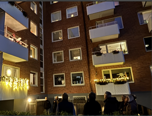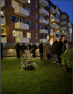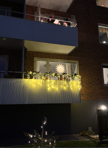 Från balkongen sjöng Jan-Olof och hans vänner stämningsfulla julsånger, och det kändes verkligen som att julen kom till vår förening.